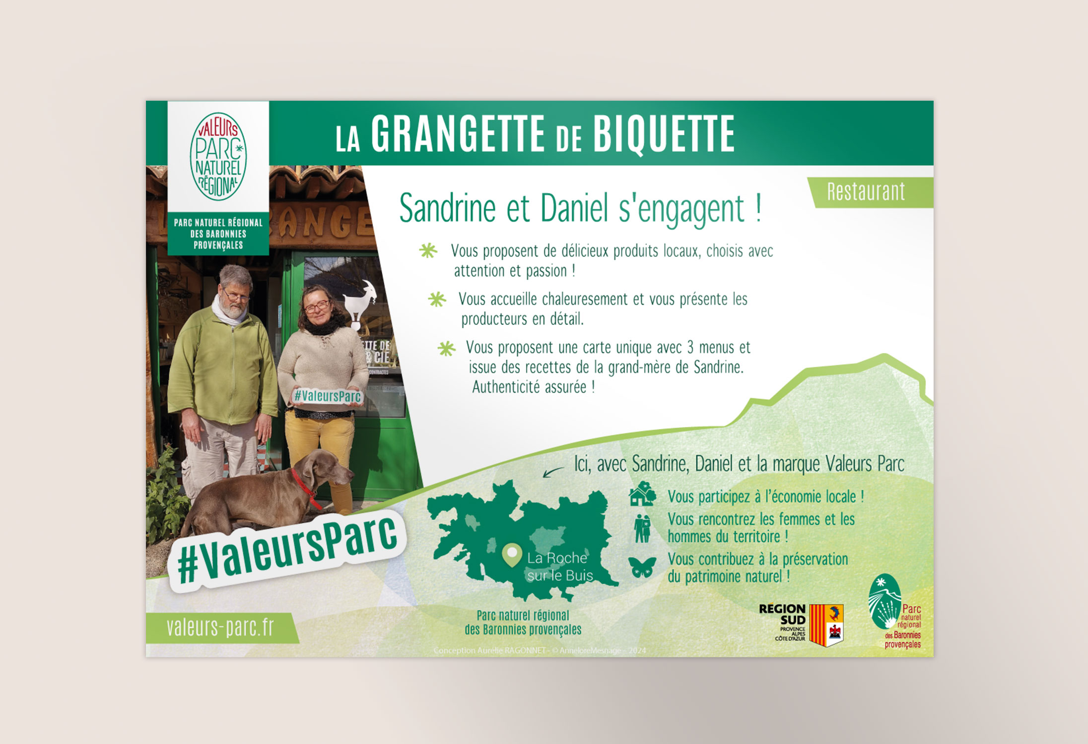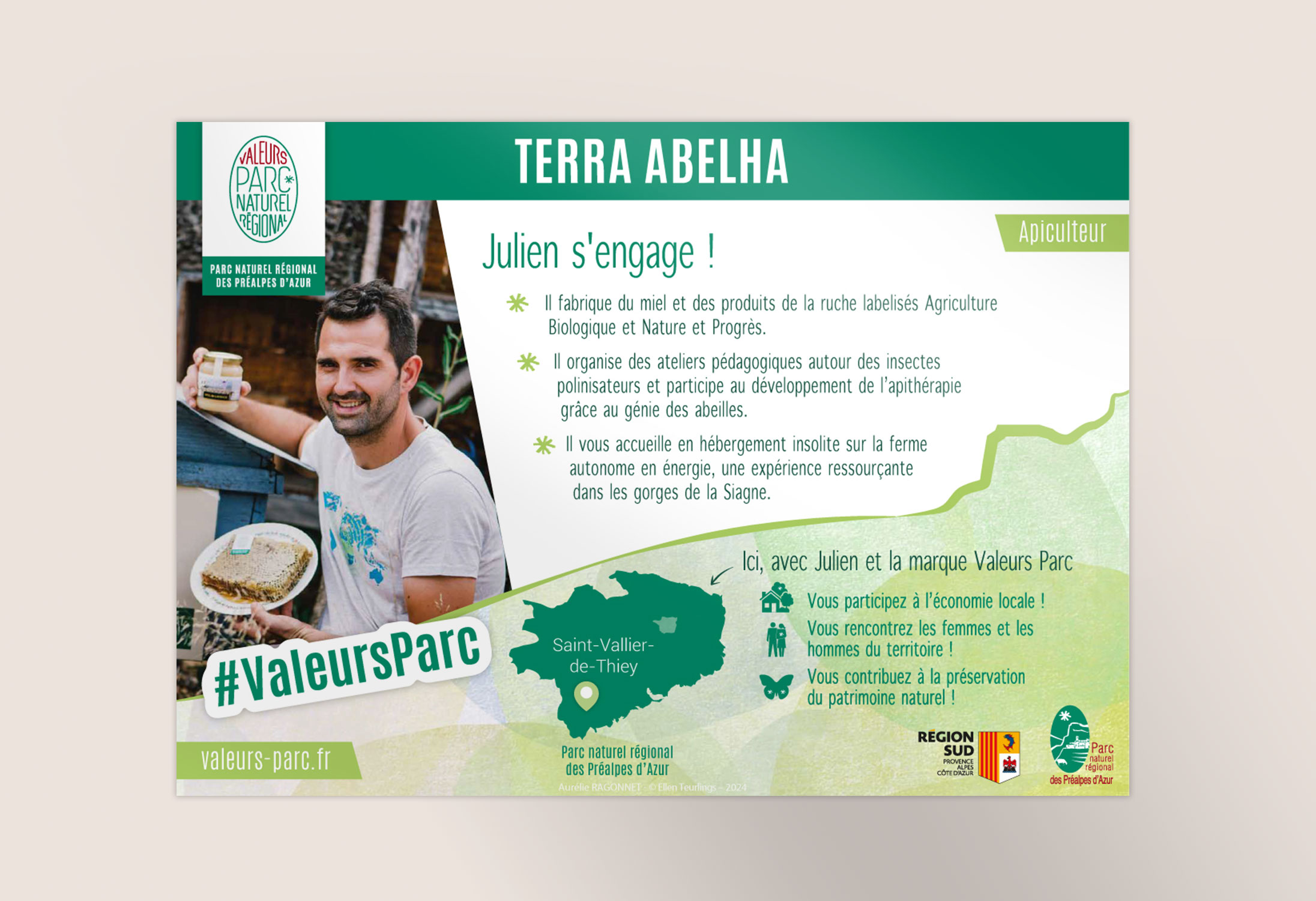 admin 0 Comments Description du projet Réalisation de 9 séries d'affiches présentant les prestataires détenteurs de la marque Valeur Parc au sein des 9 parcs naturels régionaux de PACA selon la charte graphique du réseau des parcs de PACA adaptée à chacun des PNR. Détails du projet Compétences : IllustratorPhotoshop Categories : Print Client : Réseau des PNR de PACA Date du projet : 12 septembre 2024 Projets similaires Atlas de biodiversité communale de Trets – PNR de la Sainte-Baume Détails Livret Lafitau 2024 Détails