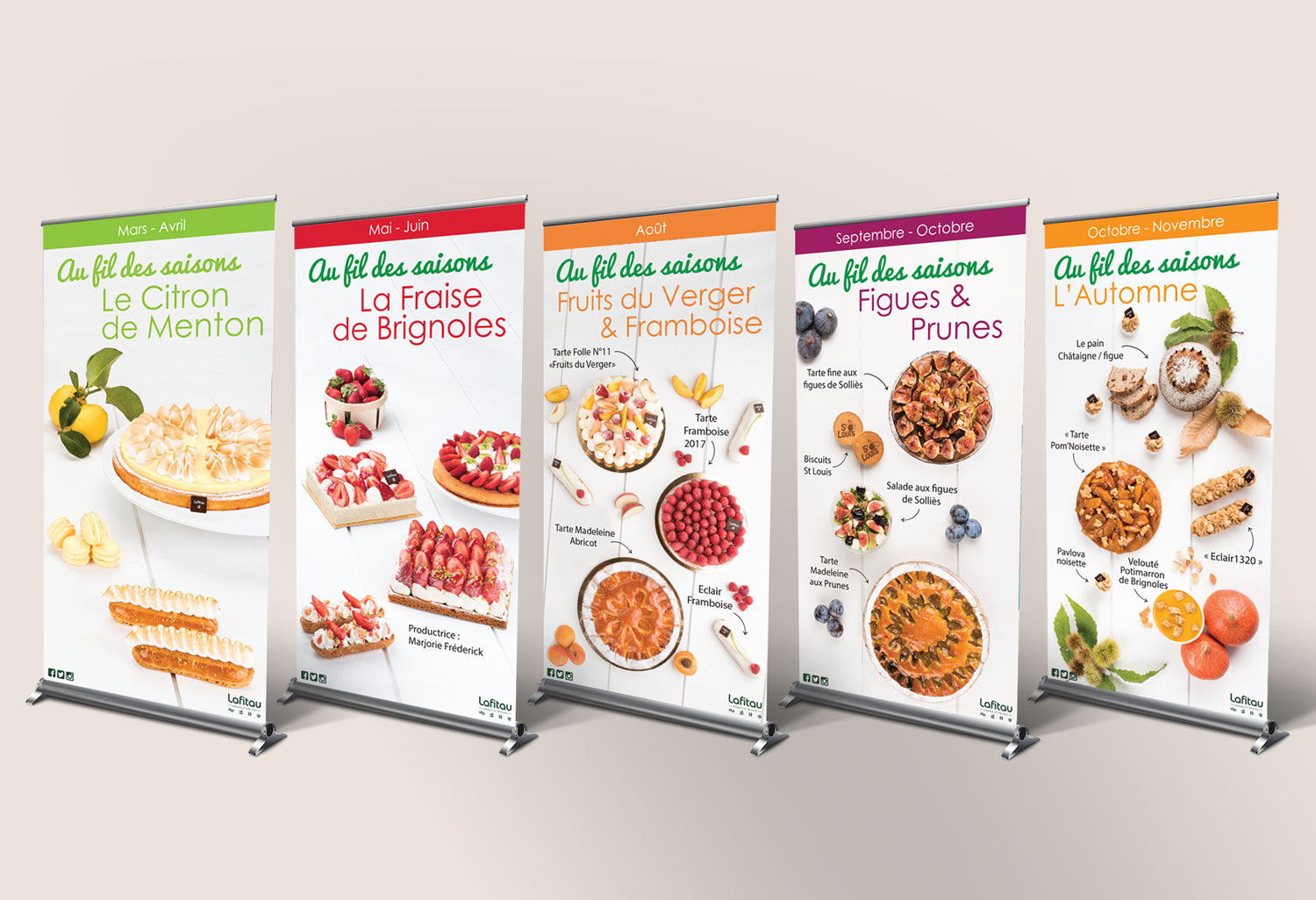 admin 0 Comments Description du projet Kakemono présentant la nouvelle gamme de produits de saison de la pâtisserie Lafitau. Affichés sur les vitrines de chacune des 5 pâtisseries Lafitau. Détails du projet Compétences : Illustrator Categories : Print Client : Lafitau Date du projet : 13 octobre 2025 Projets similaires Affiches prestatires Marque Valeur Parc Détails Atlas de biodiversité communale de Trets – PNR de la Sainte-Baume Détails Livret Lafitau 2024 Détails